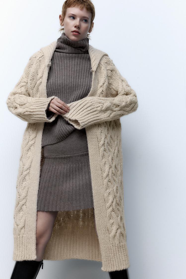 Zara Long Cable Knit Coat Clothes Design Knitted Coat Fashion Tips